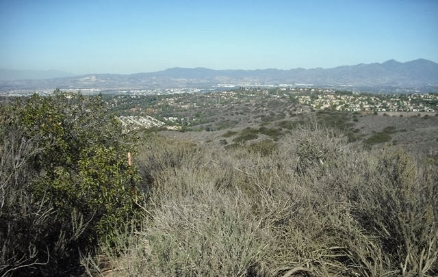 Reaching the crest at the West Ridge Trail, the hills leading ocean-ward spread out on an absolutely perfect day. West Ridge is more of a broad dusty road than a trail, but side trails offered more confined trail-like experiences, and vistas poked out in all directions, across the vast populated basins to the distant ranges, and with the crest of each successive rise, closer and closer views of the sea. I snapped plenty of shots on the mini-cam, including a couple of amusing attempts of simply aiming the camera behind me while on the run, trying successively to get it straight. These are better left unedited, unrotated, uncropped, the better to show off the fun.